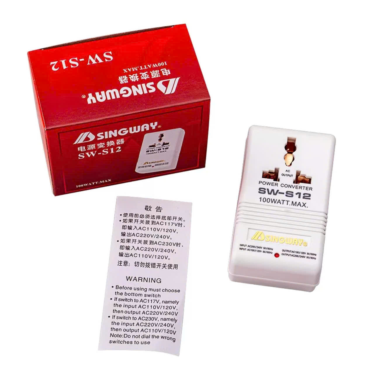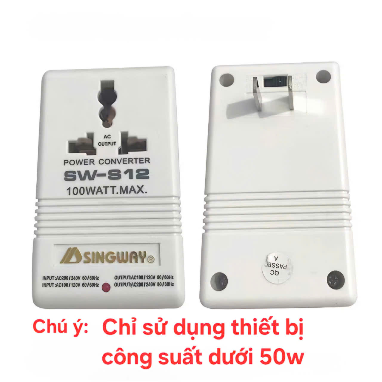 – Bộ Chuyển Đổi Nguồn Điện 2 Chiều từ 220V AC sang 110V AC hoặc từ 110V AC sang 220V AC (Công suất tối đa 100w, chỉ dùng cho thiết bị dưới 50w).